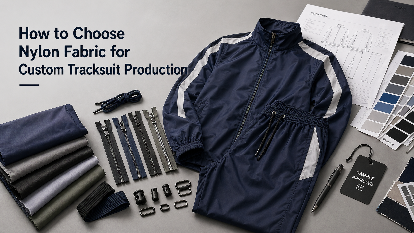 Choosing nylon fabric for custom tracksuit production requires more than selecting the word "nylon." Buyers need to confirm fabric weight, hand feel, surface finish, stretch, lining, coating, color, branding compatibility, and production feasibility before sampling.