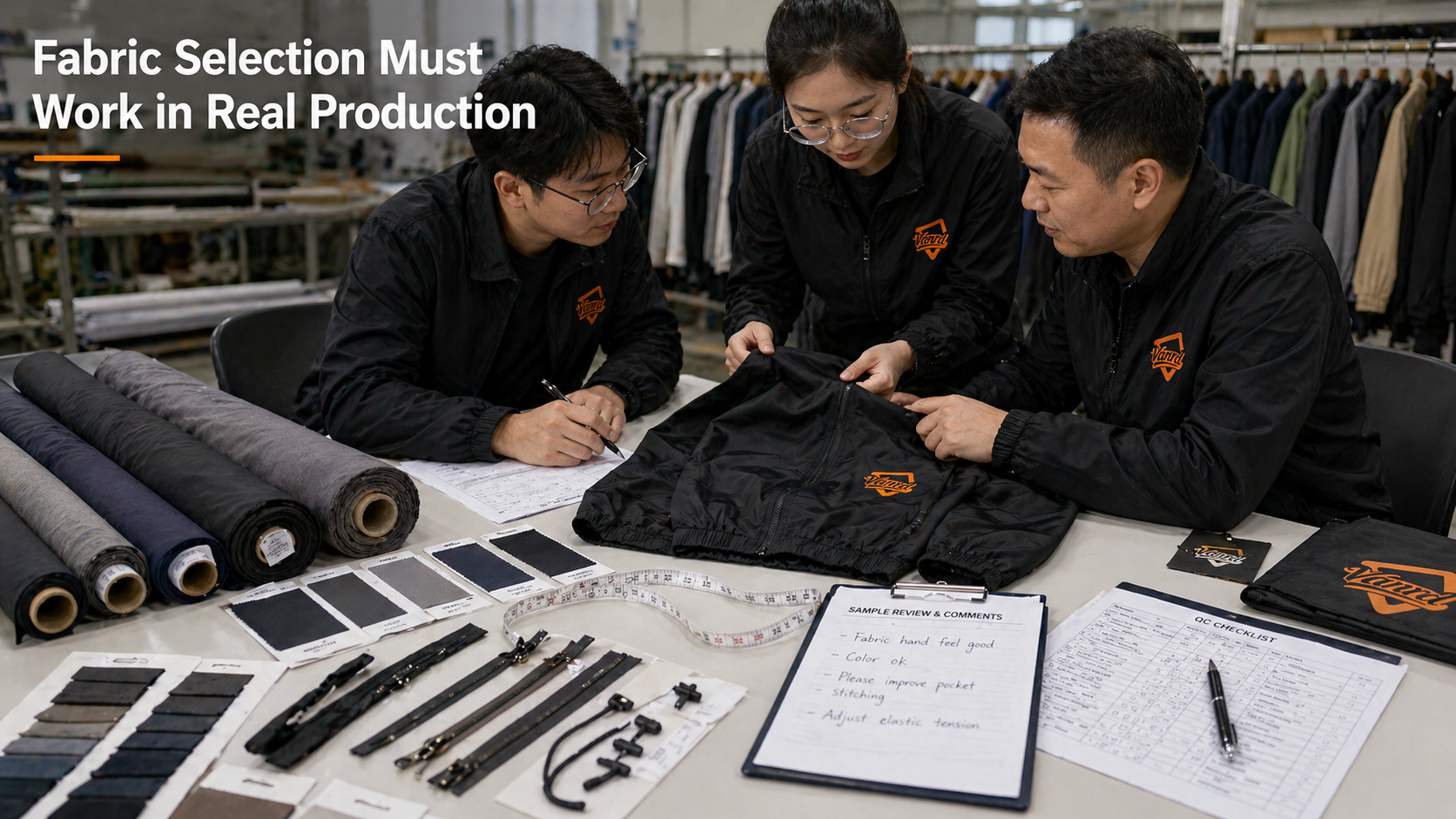 This is why fabric swatch confirmation and sample review are both important. Sampling helps the buyer and manufacturer test whether the selected fabric can become a stable production standard.