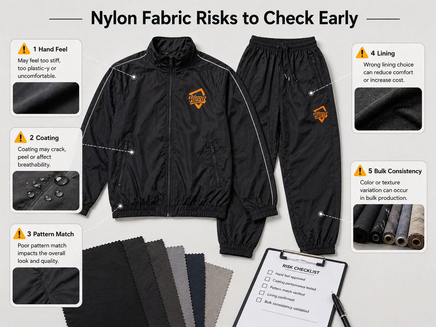 Choosing nylon fabric too quickly can create problems during sampling or bulk production. Buyers should review key risk points before approving fabric direction.
