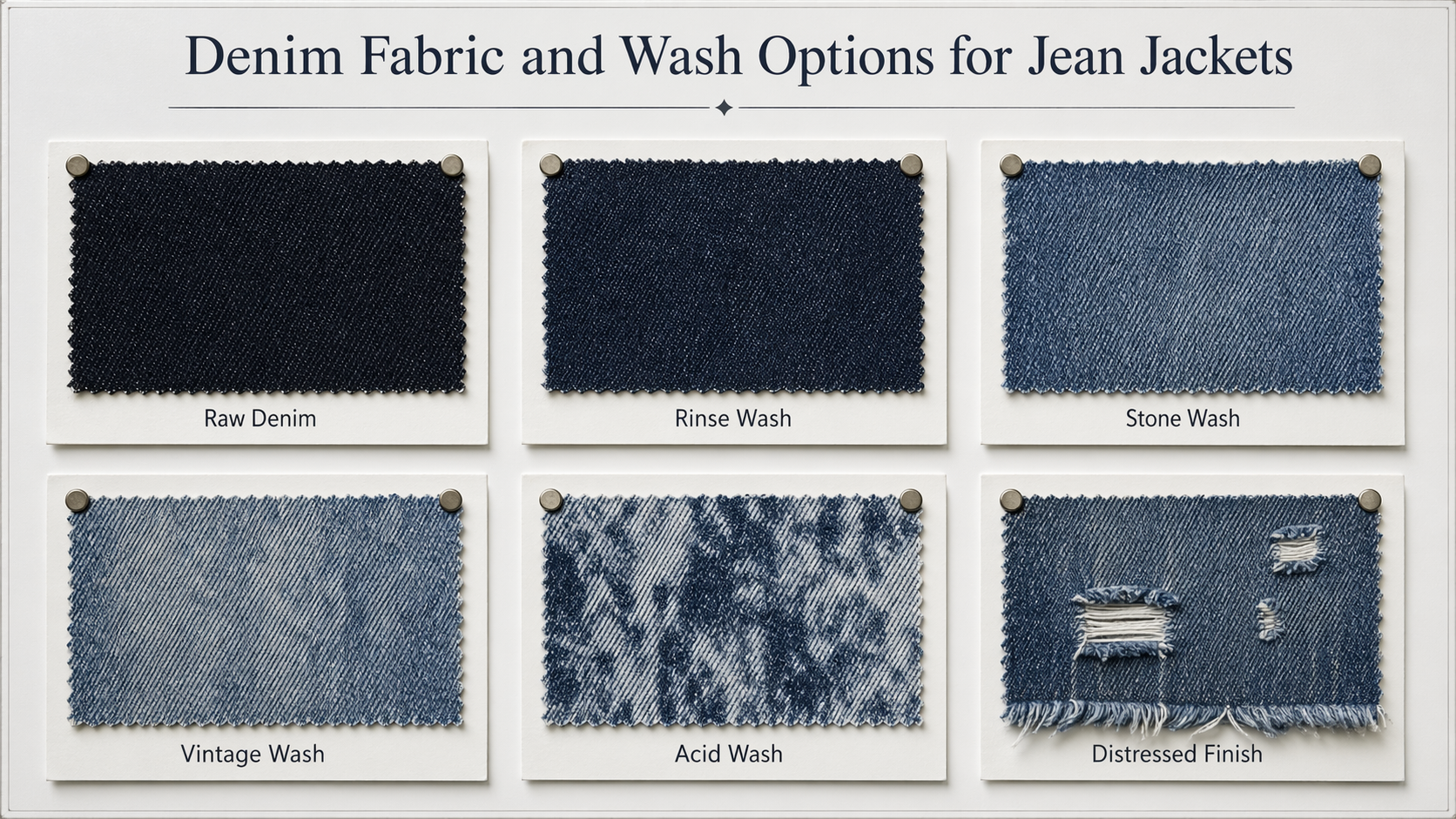 Fabric and wash are two of the most important factors in jean jacket production. The same jacket pattern can look completely different depending on denim weight, fiber composition, washing process, and finishing method.