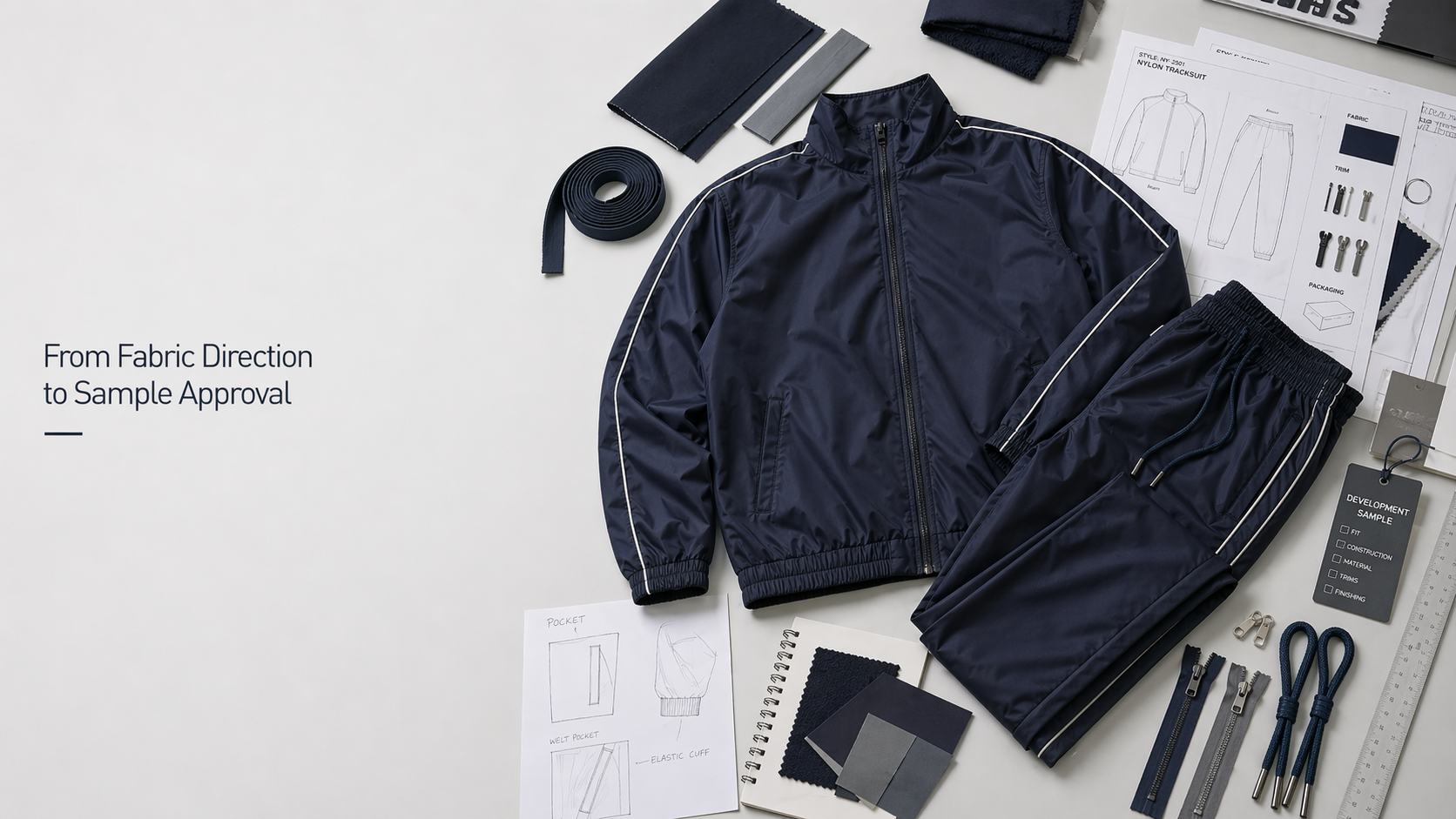 Nylon tracksuit sampling is not just about choosing a fabric and asking for a sample. For private label brands, the sample is the first physical test of fabric behavior, fit balance, trim quality, construction logic, and brand positioning.
