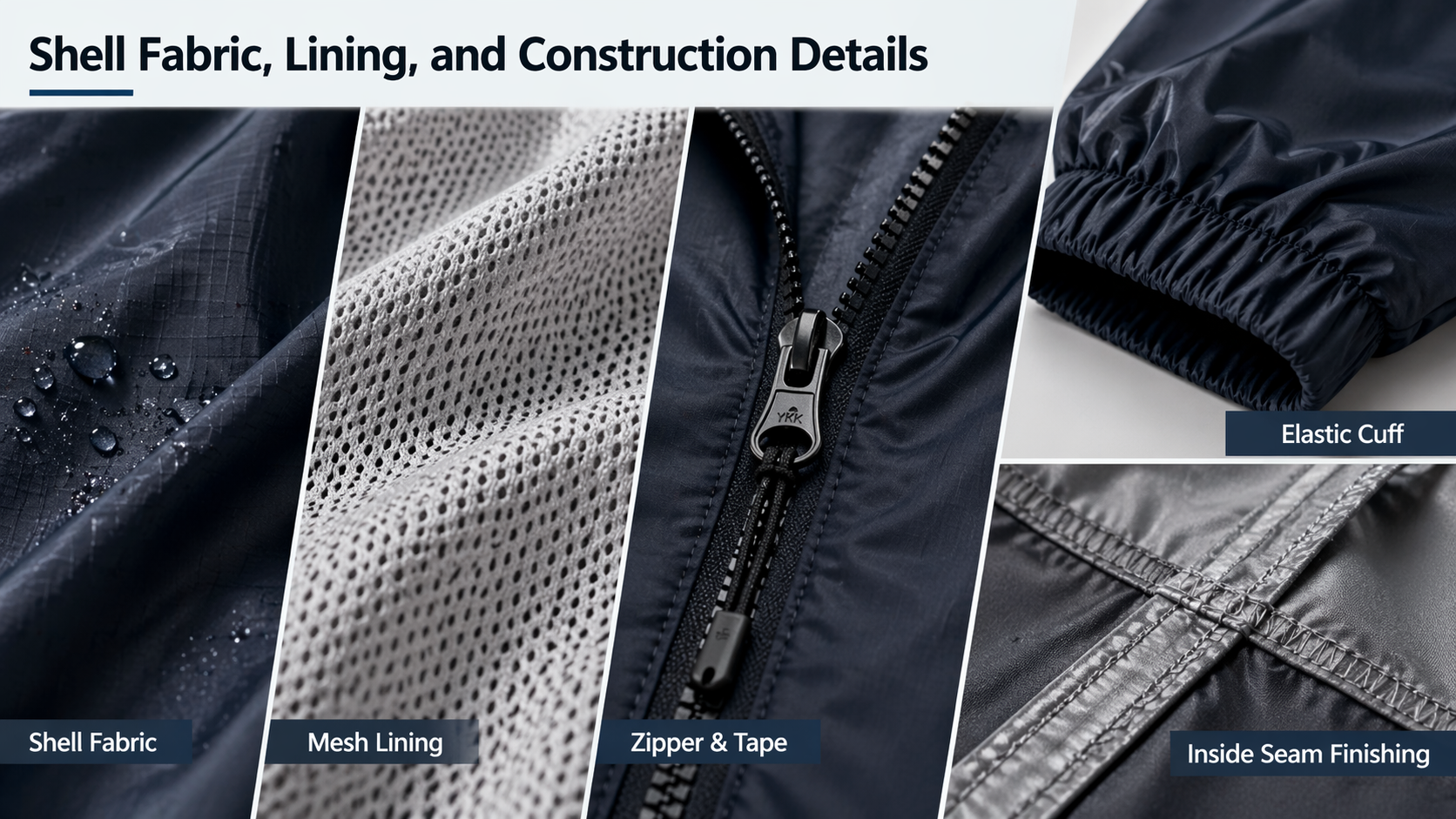 The shell fabric controls the first impression. Buyers should check the hand feel, surface texture, thickness, drape, color depth, and wrinkle behavior. Some nylon fabrics have a crisp technical feel, while others are softer and more suitable for relaxed streetwear.