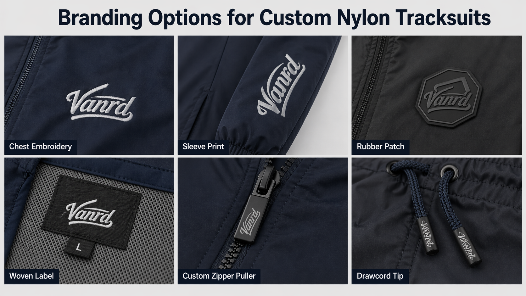 Yes. Nylon tracksuits can be customized through fabric finish, color, fit, panel design, lining, zipper style, drawcords, labels, embroidery, printing, patches, and packaging details.