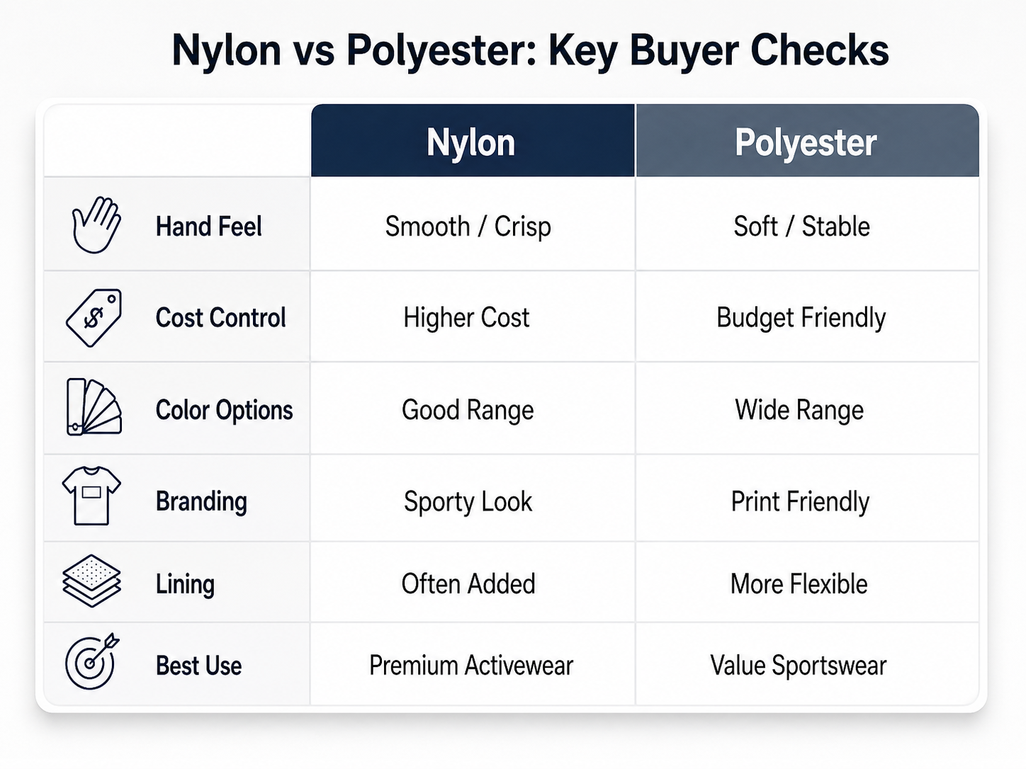 The buyer should not ask only, "Is nylon better than polyester?" A better question is, "Which fabric better fits my target product, price level, performance needs, and production plan?"