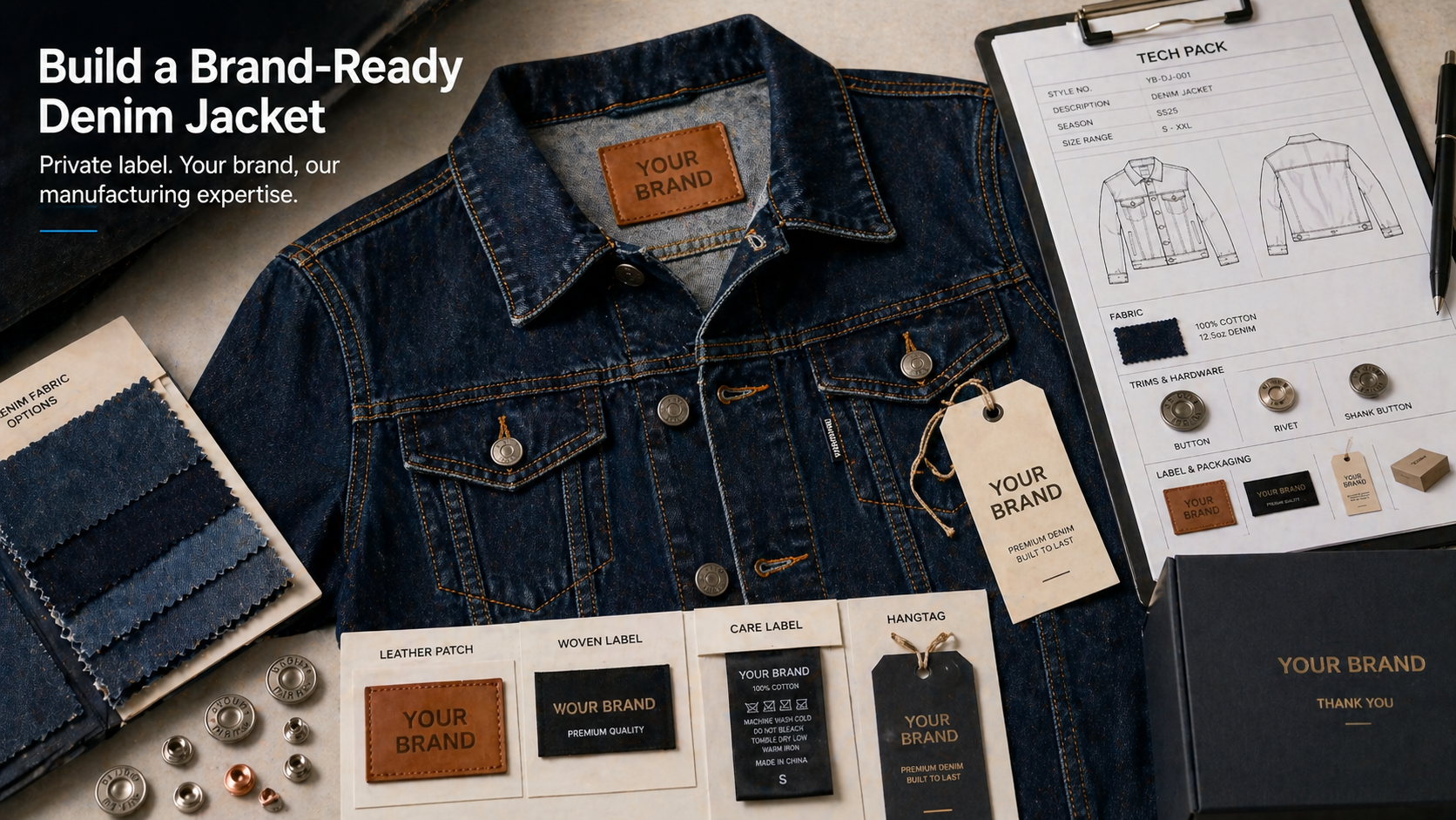 Private label denim jacket production requires more than sewing. The supplier should understand how garment construction, trims, labels, wash, and packaging work together as one brand-ready product.
