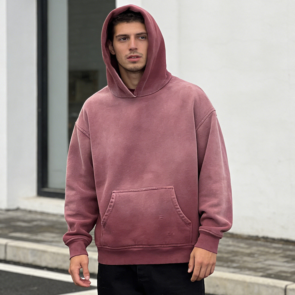 A vintage hoodie does not usually mean "old." In modern apparel manufacturing, it usually means a hoodie that has been developed to look more worn-in, softened, faded, washed down, or visually broken-in than a standard new garment.