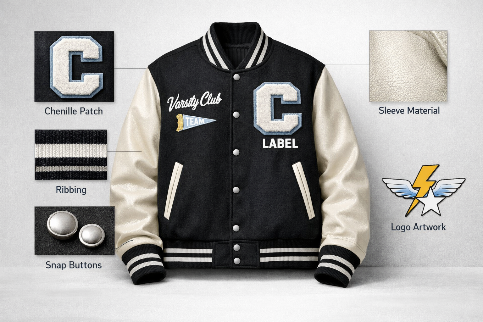 Before a buyer prepares files or trim comments, the first question should be simple: what kind of varsity jacket is actually being built?