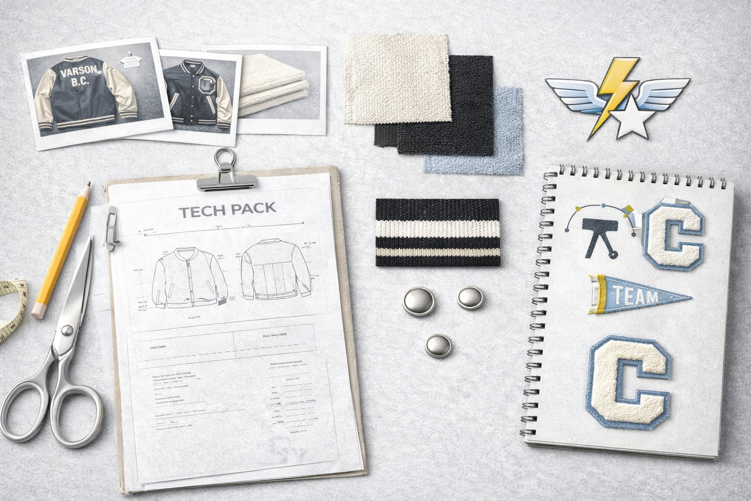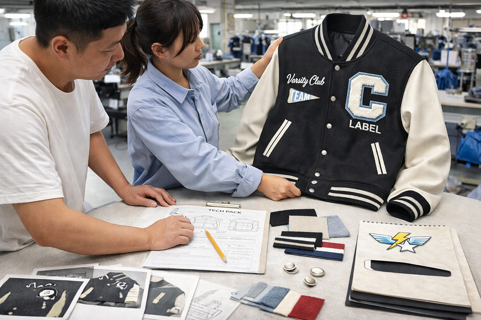 A varsity jacket is not a one-variable product. Body fabric, sleeve material, rib, snaps, pocket direction, chenille patch, embroidery, applique, lining, and fit can all affect the first sample outcome. When those inputs arrive in a fragmented way, sample comments can become broader and less efficient.