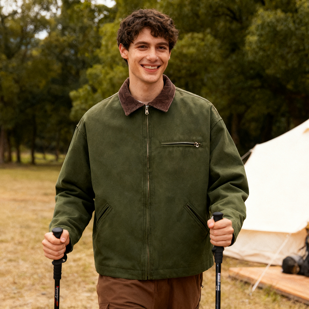 Hardware options include heavy-duty zippers, hidden storm flaps, metal snaps, rivet reinforcements, and reinforced hanging loops.We pre‑test pilling, seam slippage, colorfastness, zipper cycle and snap pull under an AQL plan to ensure daily durability.
