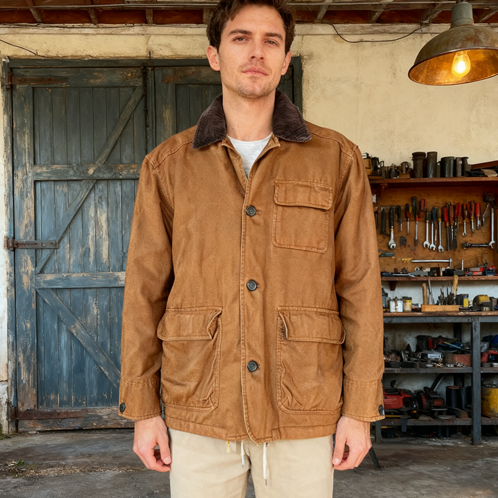 enzyme/stone wash for a broken-in hand; DwR for water resistance; and garment dye or pigment dye for muted workwear tones.
