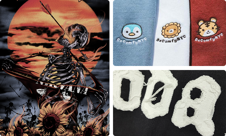 Vintage hoodies usually need softer, aged branding instead of very glossy logos, so we provide screen print, water-based and crackle inks suited to this look. You can also specify puff and high-density hits, embroidery, chenille patches, felt applique, woven badges, rubber badges and distressed prints that are tested to hold up in washing. For private-label programs we handle woven neck, size and care labels, hangtags, barcodes, polybags and printed cartons in one package. This lets you receive vintage hoodies that are fully branded, packed and ready for your retail, wholesale or DTC channels.