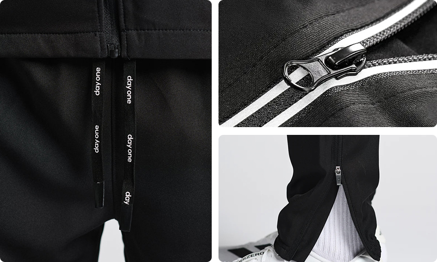 confirm stretch fabrics, zips, ribs and hardware