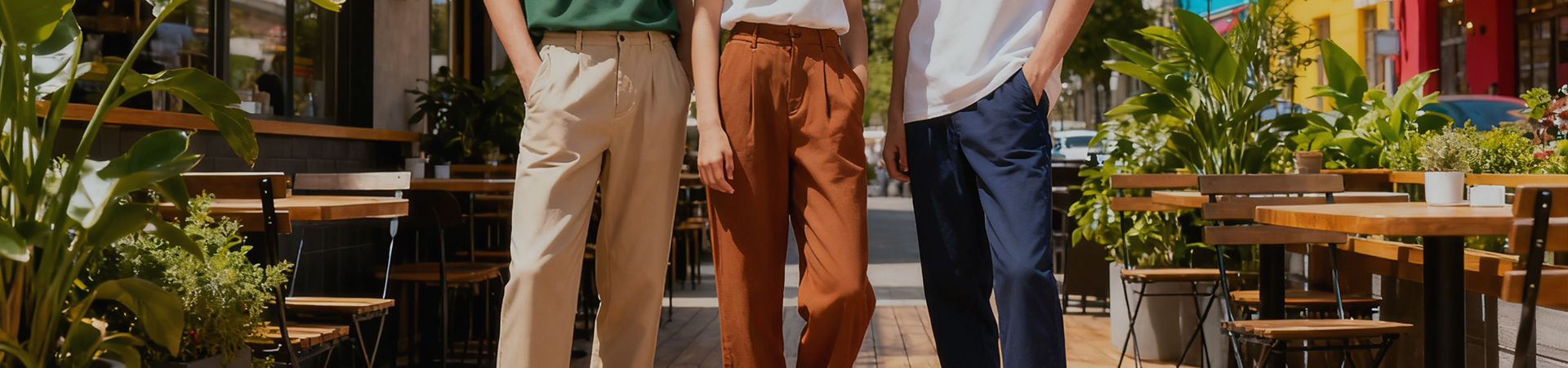 We help independent and established labels build coherent pant ranges alongside tops, aligning silhouettes, fabrics and trims across capsules and core programs while keeping MOQs realistic for growing volumes.