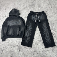Custom Tracksuit Manufacturers Flame Fleece Hoodie Set for Streetwear