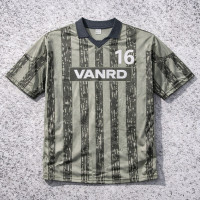Custom soccer jersey with bold stripes and team number, perfect for sportswear and teamwear customization.