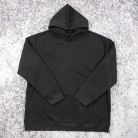 Midweight black pullover hoodie with kangaroo pocket and rib trims, ideal for custom hoodies programs.