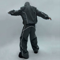 Custom tracksuit set in lightweight shell with hooded jacket, loose pants, and contrast piping for streetwear or teamwear.