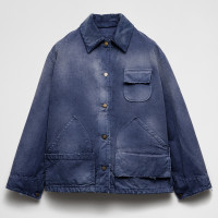 Custom work jacket with washed finish, cord collar and oversized fit for private label workwear and streetwear brands.